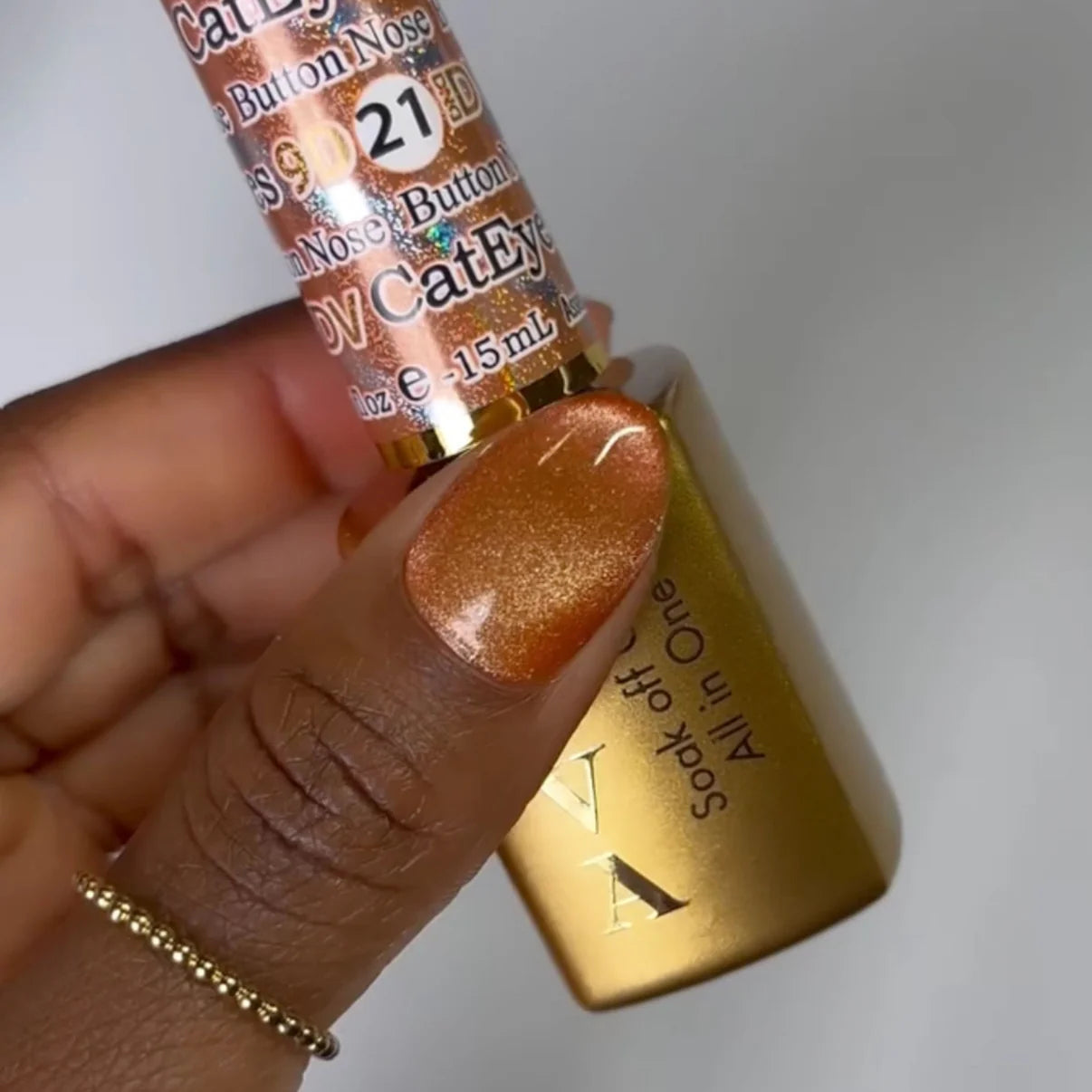 Button Nose DIVA #21 – This tangy caramel-orange cat eye is a cute as a button! Be nosy and find out just how sweet it'll look on your next manicure.