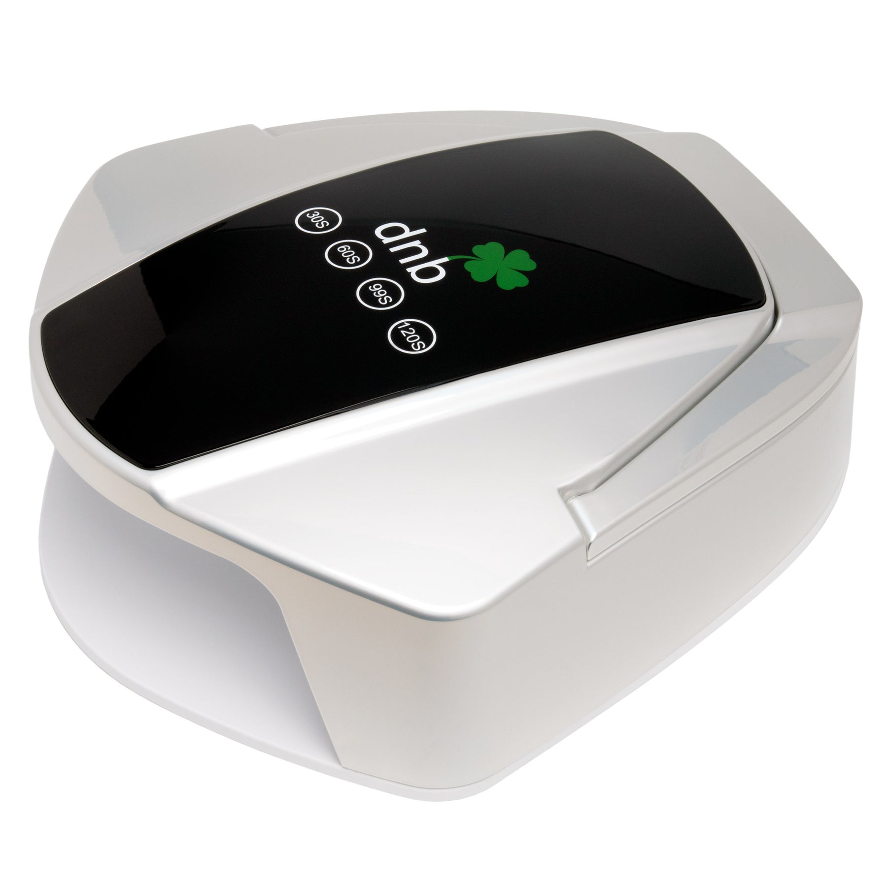 DNB Cordless UV LED Lamp 96W offers powerful, fast curing with 48 dual-core UV/LED beads and 96W output. The rechargeable design delivers 10–12 hours of cordless use after a 4-hour charge. Features a large LCD screen with timer display and battery level, plus USB output to charge other devices. Includes auto sensor, 4 timer settings (30s, 60s, 90s, 120s), and a rotatable display. Spacious interior fits both hands or feet, with a removable base for easy cleaning and pedicures. Ideal for salon or home use.