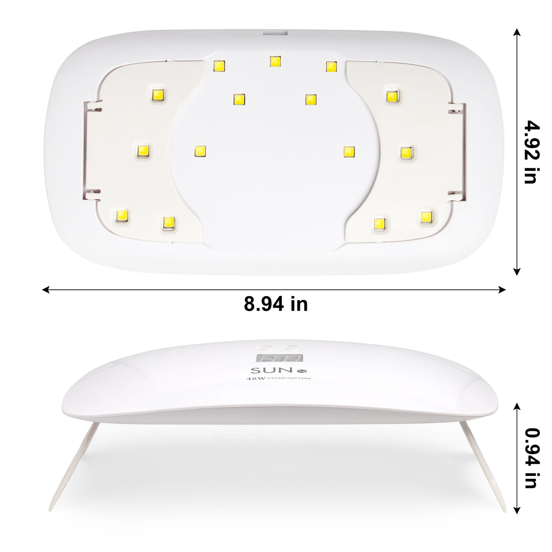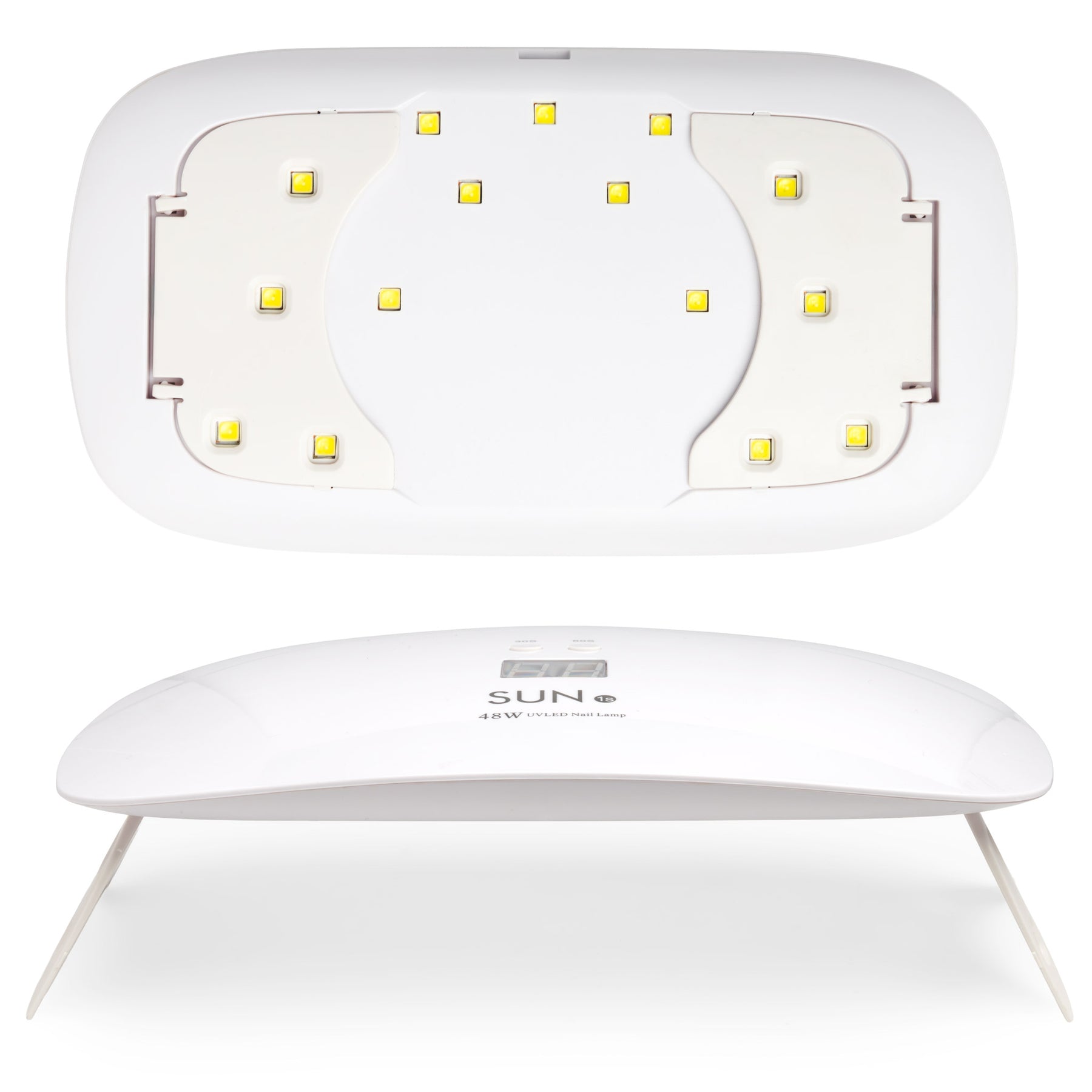 This 48W UV/LED nail lamp delivers powerful and even curing for gel polish, builder gels, rhinestone glue, and more. Equipped with dual-light technology, it protects the skin while curing a wider range of formulas. The digital timer display, 30s and 60s presets, and foldable legs make it perfect for salon use or mobile nail techs.