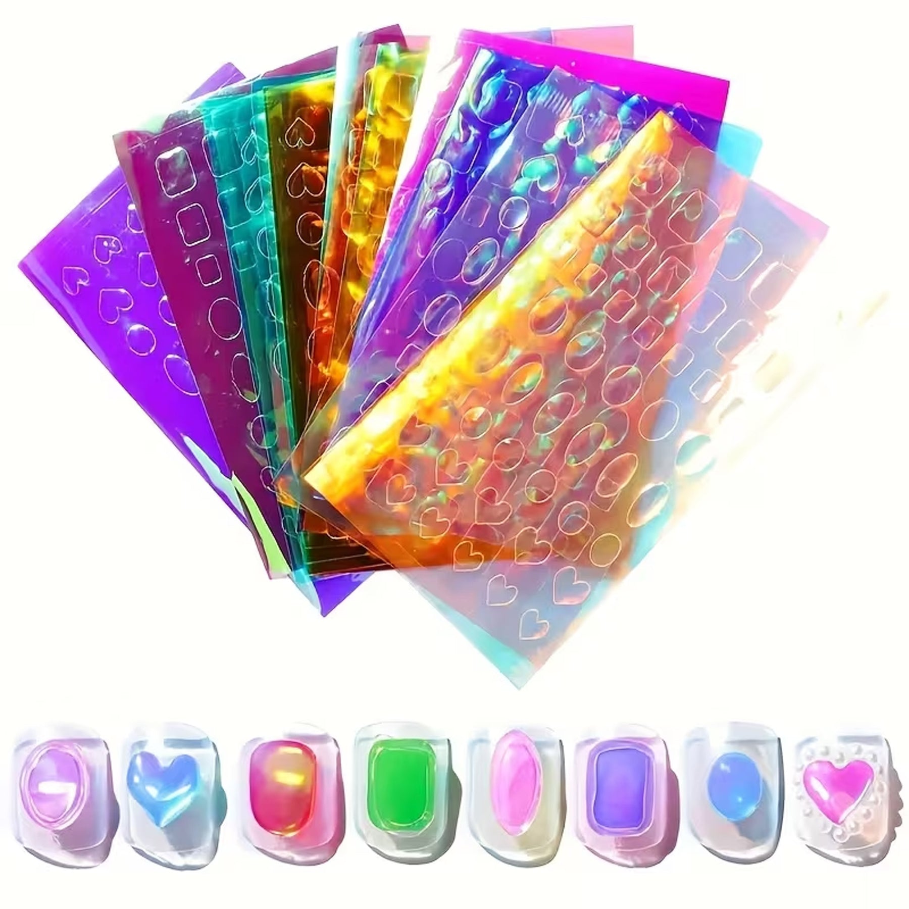 Broken Glass Effect: Iridescent aurora glass stickers create a crystal-like, broken-glass finish with eye-catching shine.