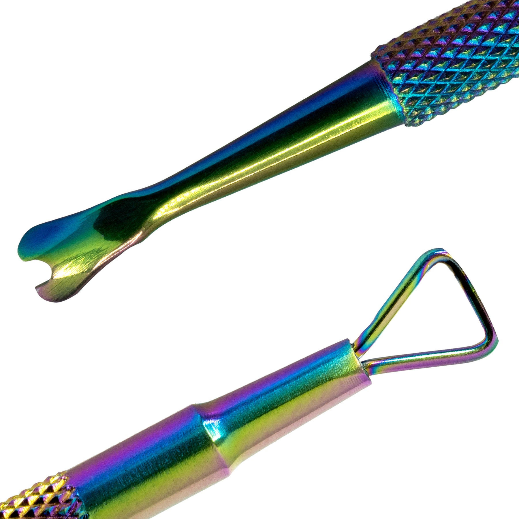Remove dead skin and false nails with ease using the DNB Curved Gel Remover and Triangle Scraper. One end features a curved scoop head designed for lifting product or pushing dead skin, while the other end has a triangle scraper for detailed gel removal. The ergonomic textured handle offers control and comfort. Crafted from stainless steel with a vibrant tornasol finish, this tool is ideal for precise, professional results.
